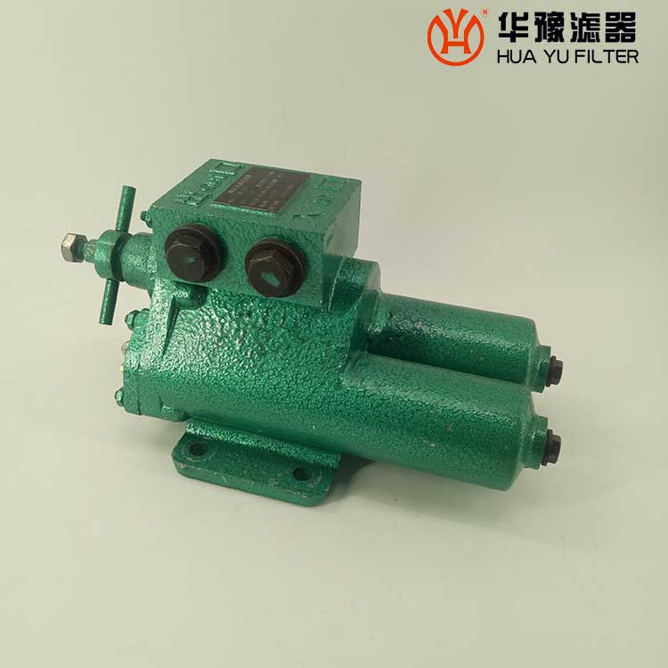 每一濾芯組件由濾器蓋、濾芯套筒、濾片及濾片圈等組成,濾器蓋頂部裝有放氣閥,供排出濾器內(nèi)腔的空氣用。 濾片套在濾芯套筒上,是濾器的主要過濾元件,由濾網(wǎng),支承網(wǎng)及波紋隔盤等組成,濾網(wǎng)的網(wǎng)目數(shù)由用戶根據(jù)需要選用。轉(zhuǎn)換閥體是由鑄鋁鋁合金制成的椎體,與閥孔研磨配合,閥體上鑄有上下兩油道孔,上油道孔一端通濾芯上方油腔,一段通濾器出口,下油道孔一段通濾芯腔,一段通濾器進(jìn)口,當(dāng)轉(zhuǎn)換閥迅速從一極限位置轉(zhuǎn)至另一極限位置時,閥體將一濾芯腔的通路關(guān)閉,而將另一濾芯腔的通路打開,此時,壓力油從濾器進(jìn)口流入濾芯腔,經(jīng)濾網(wǎng)過濾后的清潔油經(jīng)上方油腔從出口流出,達(dá)到濾清油液的目的。轉(zhuǎn)換閥體軸端頭上的箭頭指向接通的濾芯腔的一邊。
